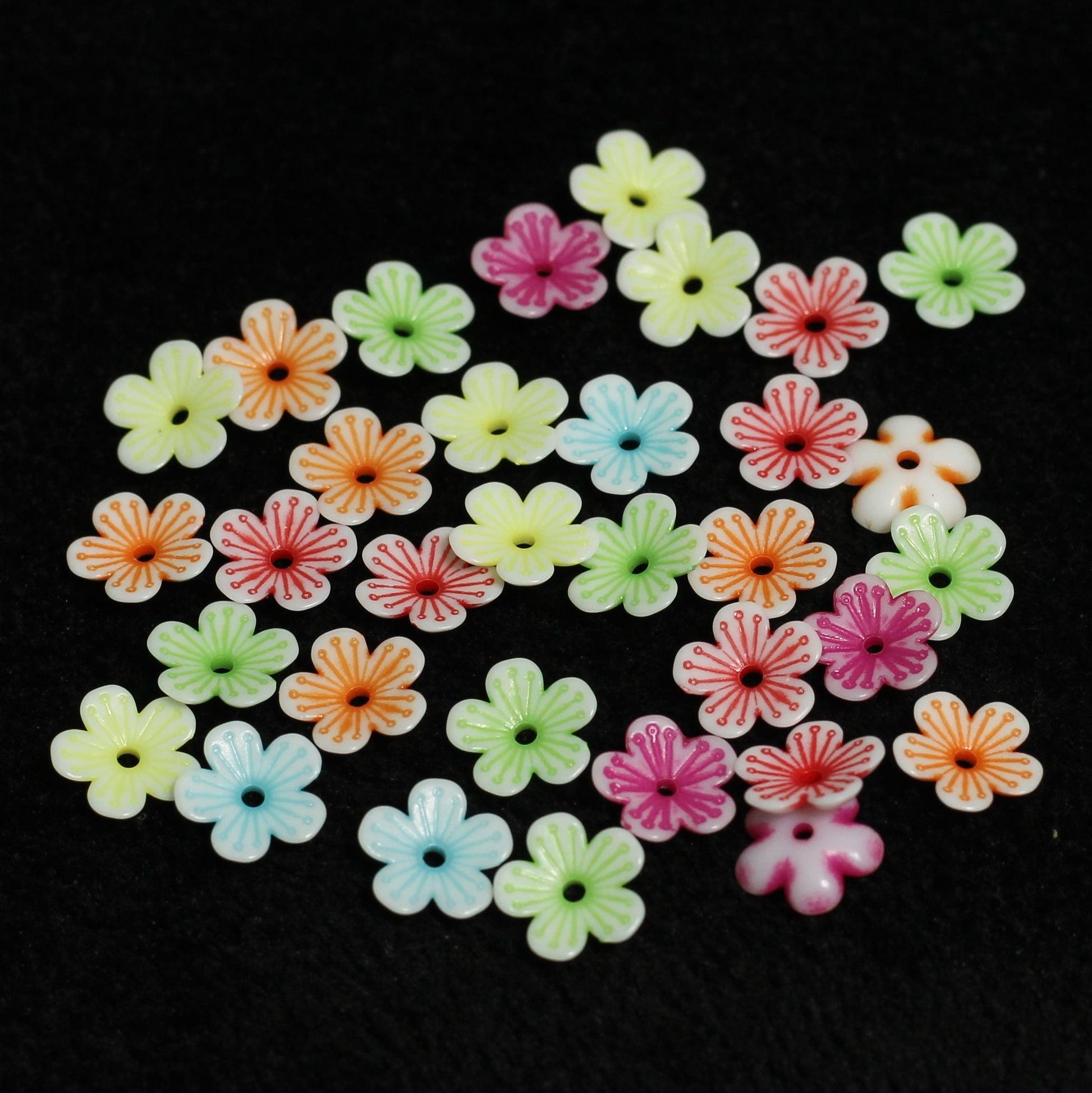 100 gm, 11x2mm Flower Acrylic Beads Assorted Color - MultiColor / Acrylic / 100 gm
