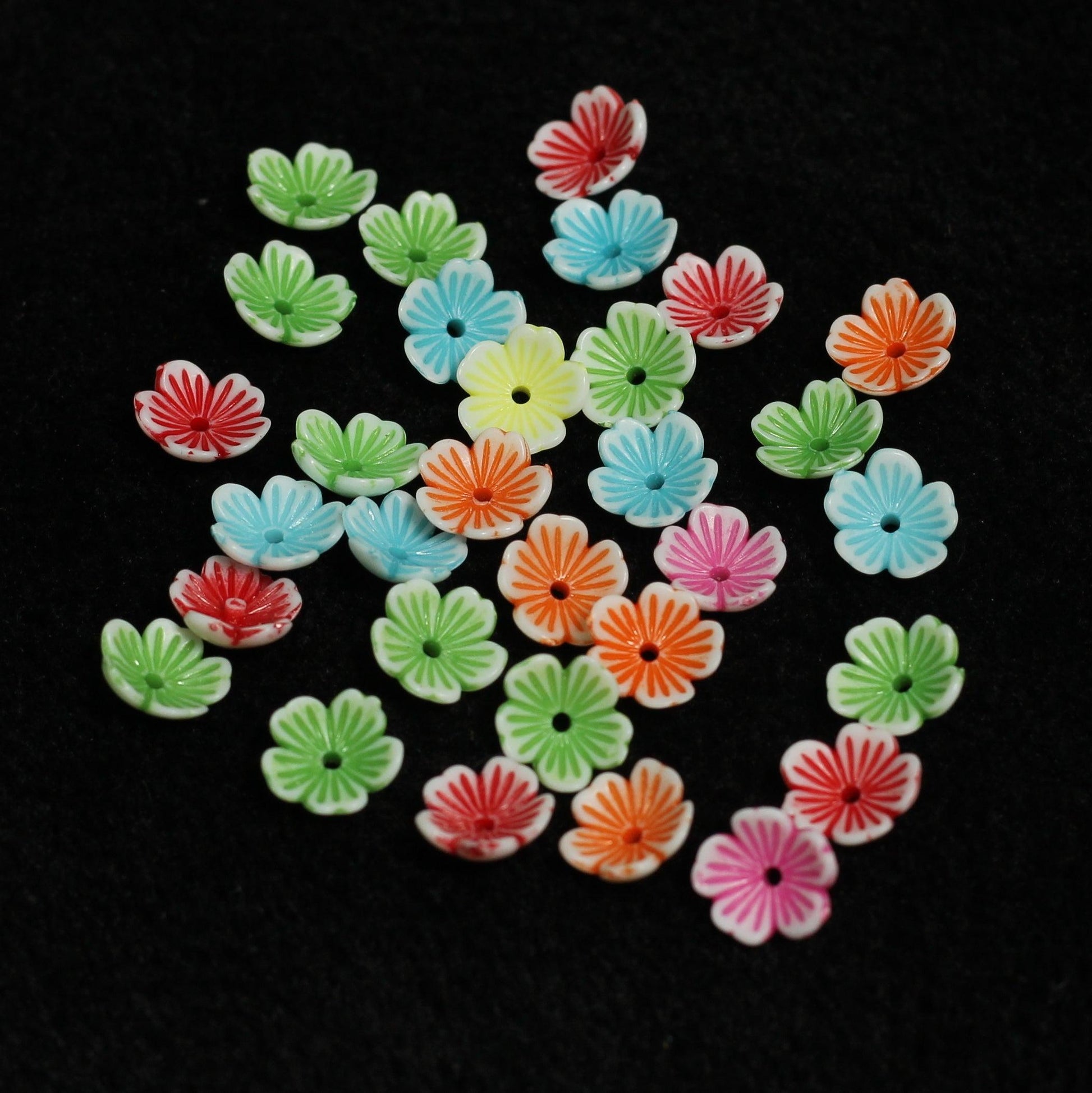 100 gm, 11x4mm Flower Acrylic Beads Assorted Color - MultiColor / Acrylic / 100 gm