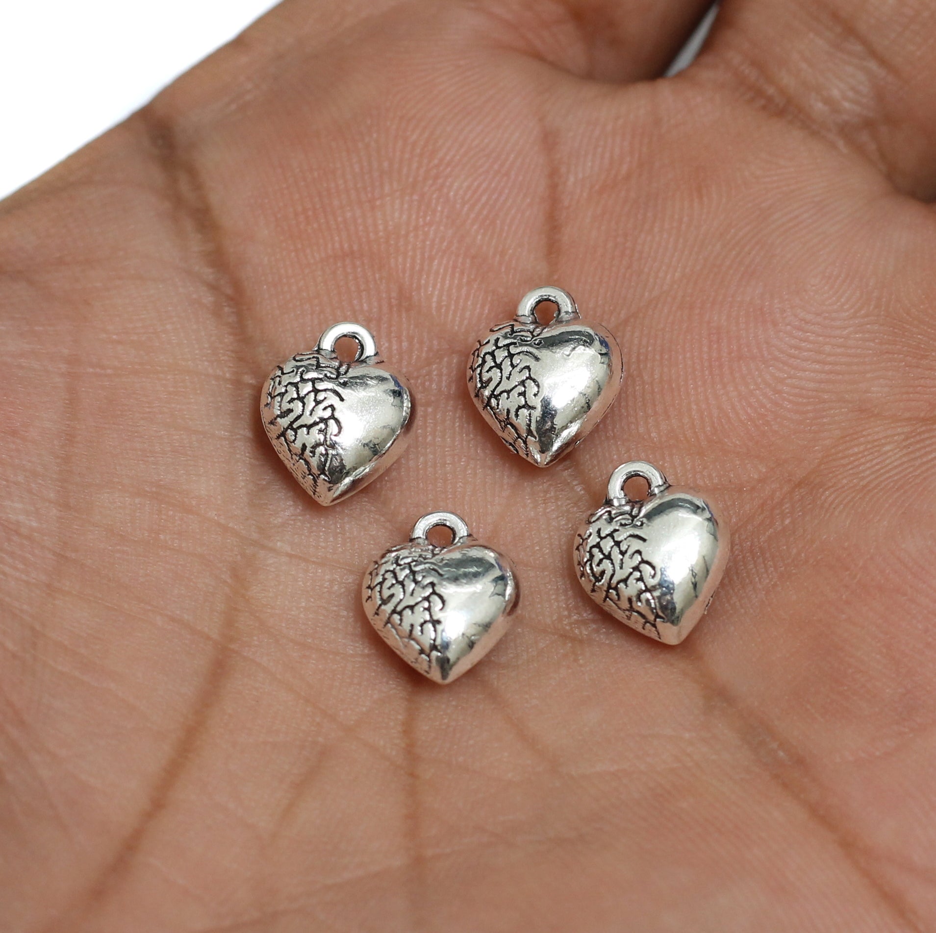10x12mm German Silver Heart Charms - Silver / German Silver / 10 pcs