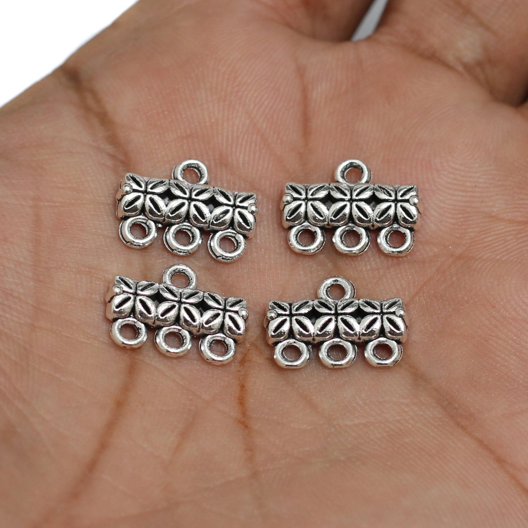 12x15mm German Silver Three Strings Connectors - Silver / German Silver / 10 pcs