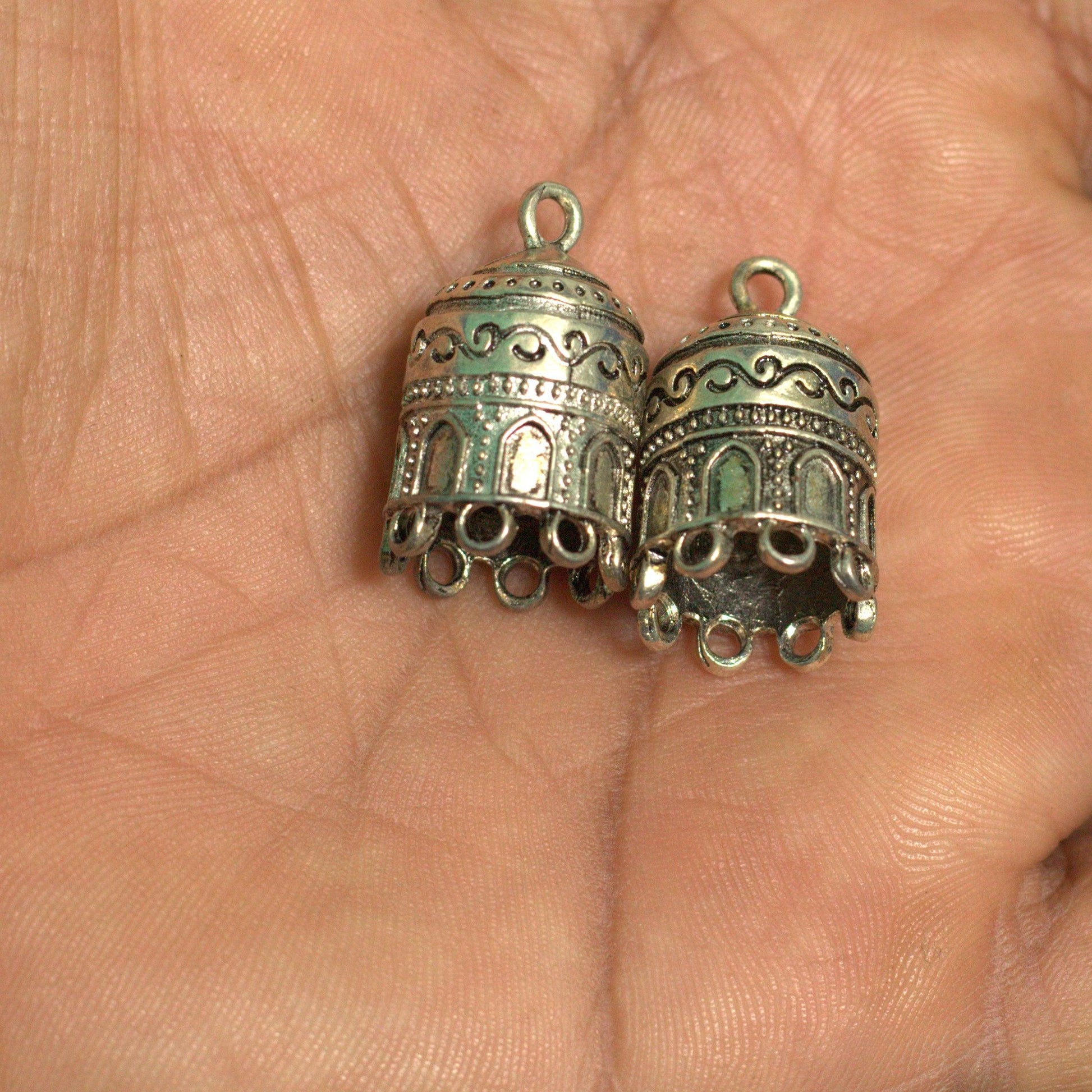 2 Pairs, 24x15mm German Silver Jhumki Components - Silver / German Silver