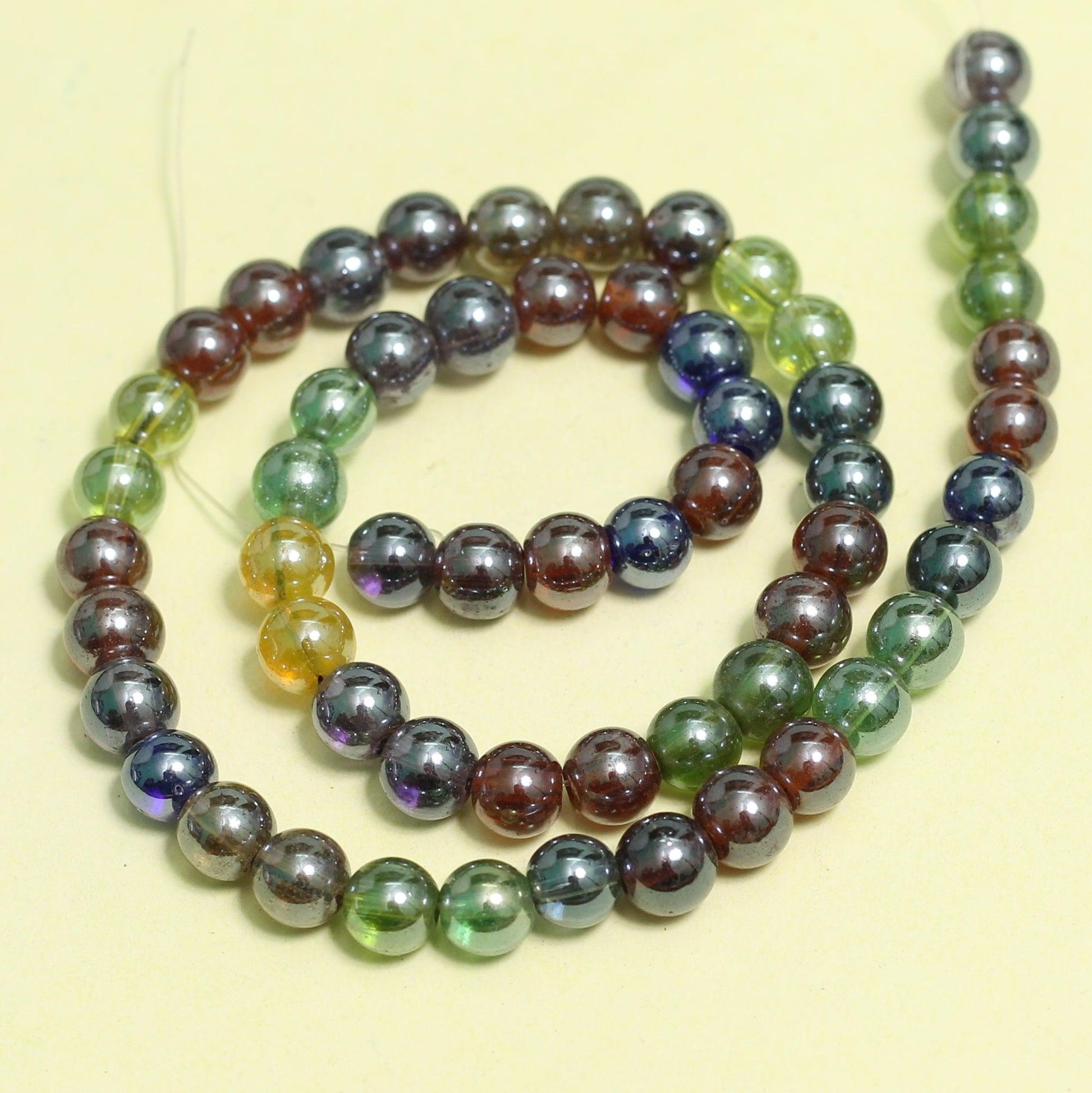 2 Strings, 8mm Glass Metallic Finsh Round Beads - Glass / Round / MultiColor