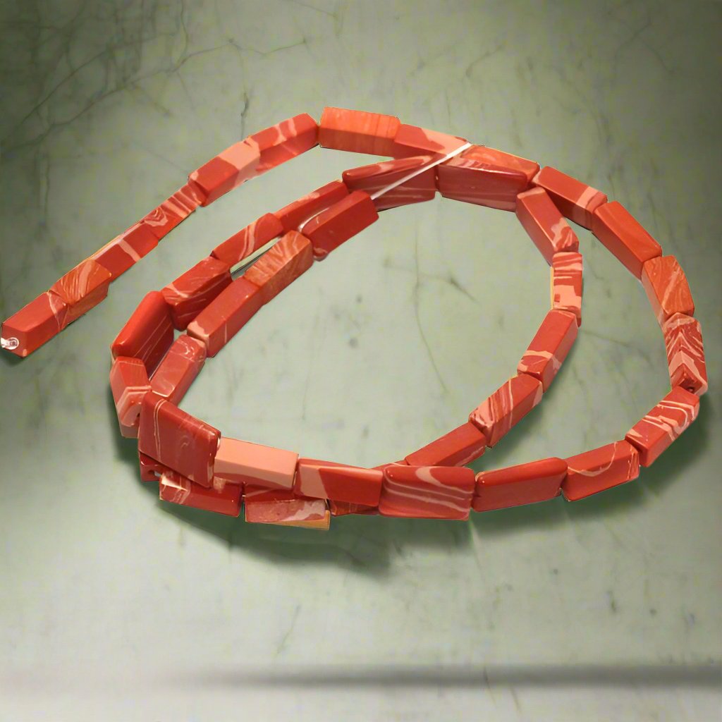 2 Strings Semiprecious Howlite Beads 4x12mm - Red / Stone / Rectangle