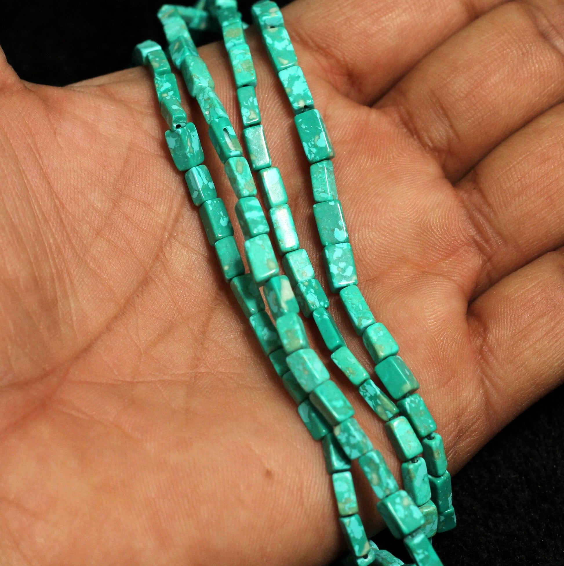 2 Strings Semiprecious Howlite Beads 6x3mm - Green / Stone / Rectangle