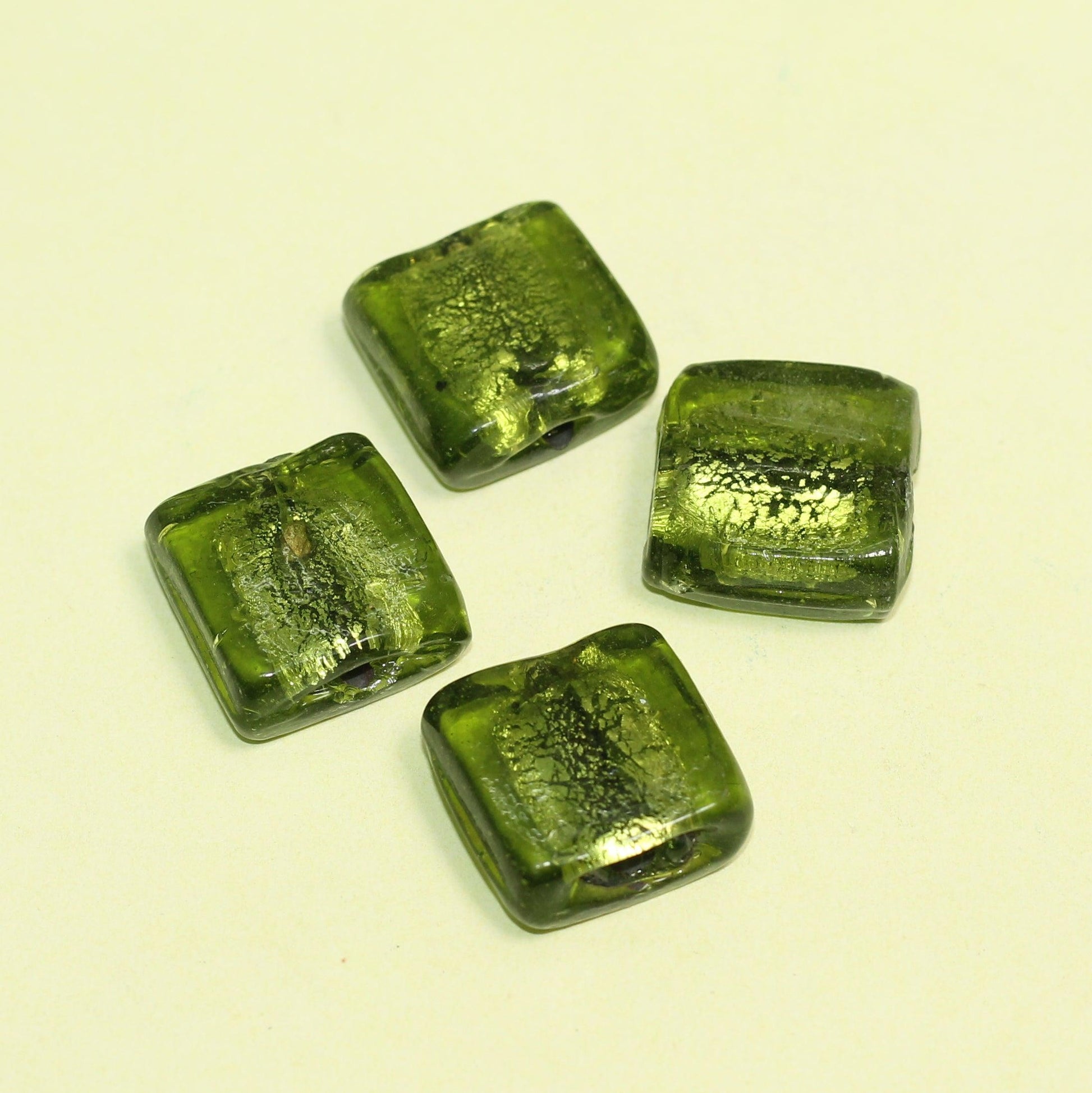 Glass Silver Foil Square Beads - 10 Pcs / Olive / Square