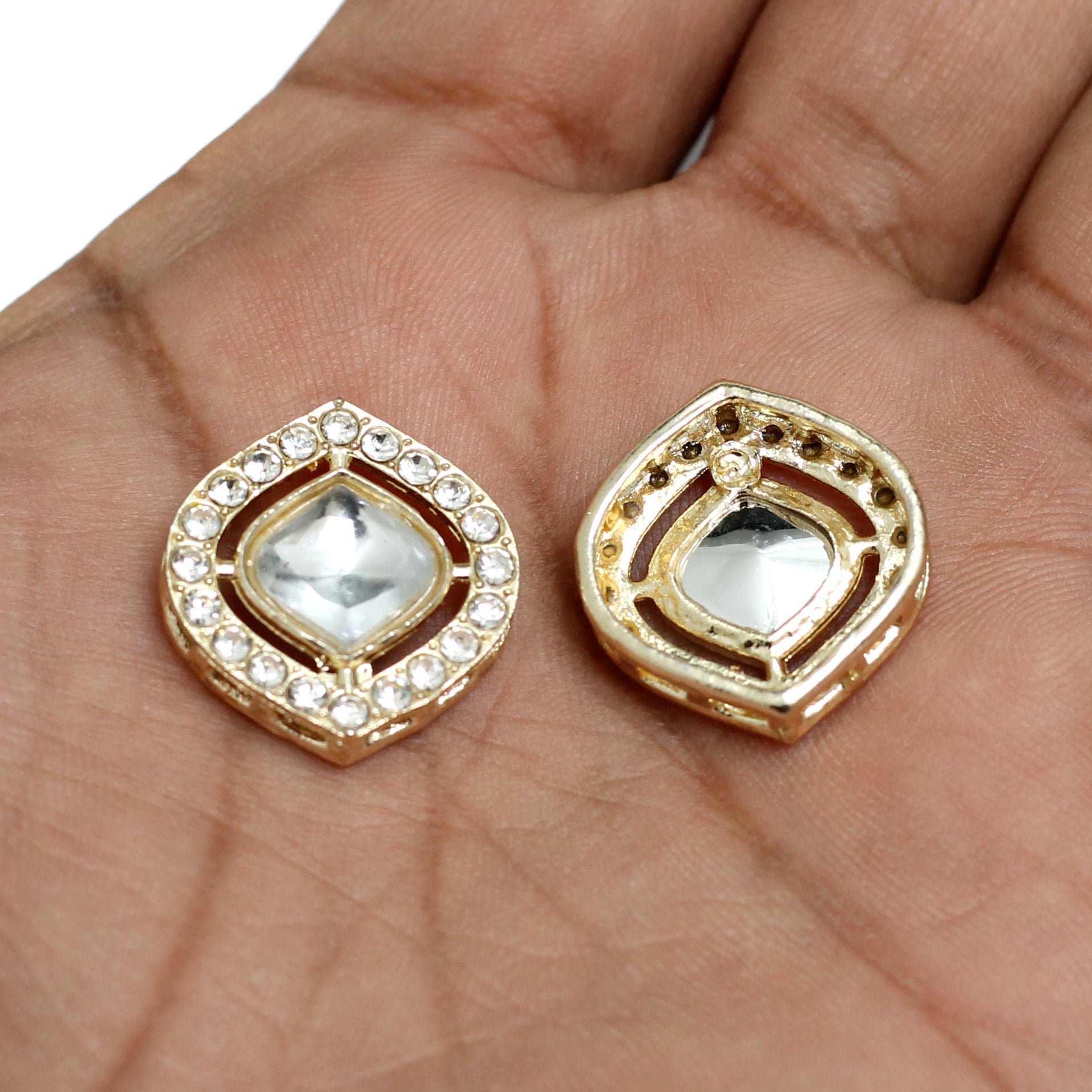 19x21mm, Kundan Connectors Golden - Golden / Kundan / 4 Pcs