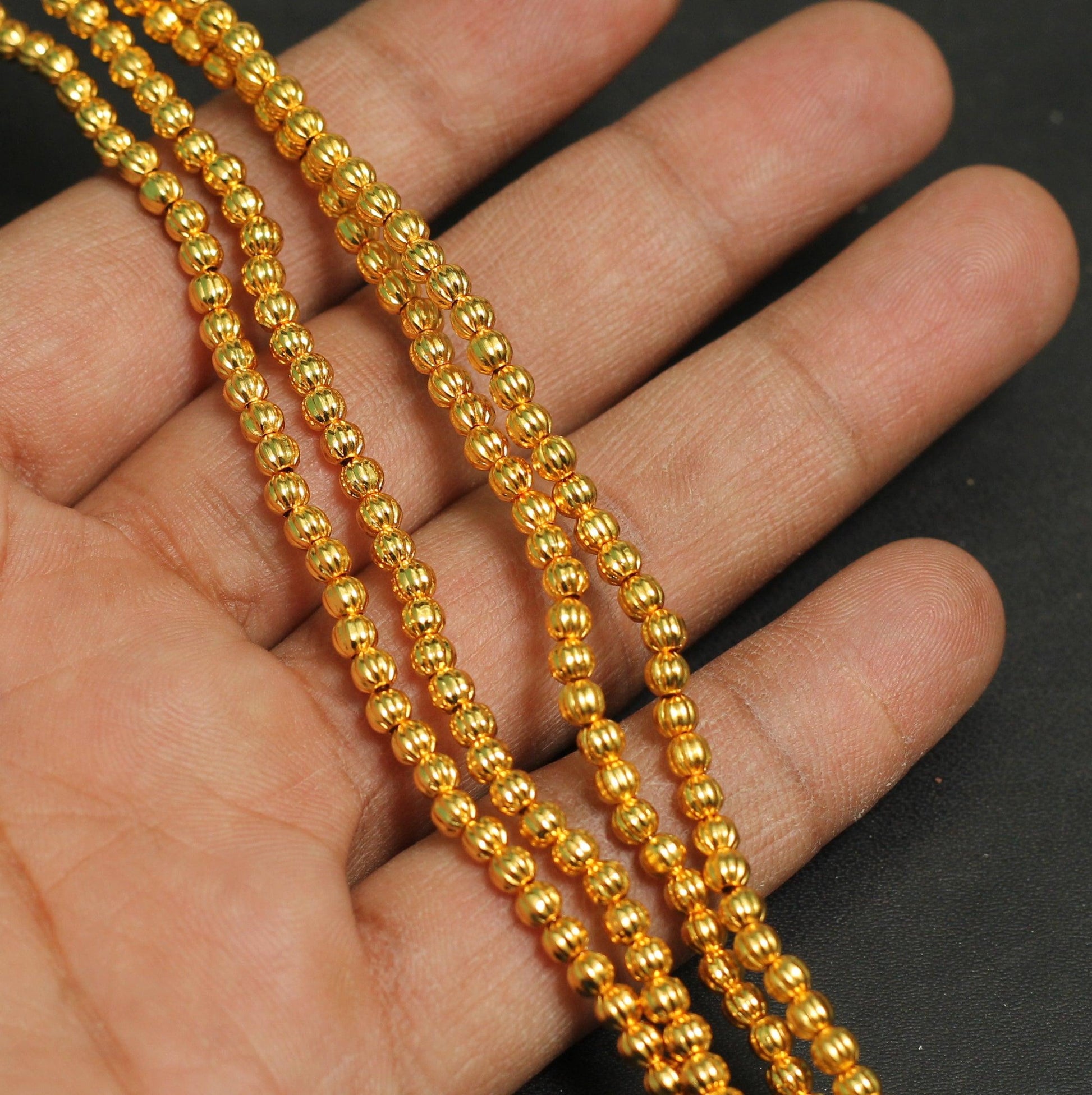 4mm Brass Kharbuja Gold Beads - Golden / 4mm / 1 String