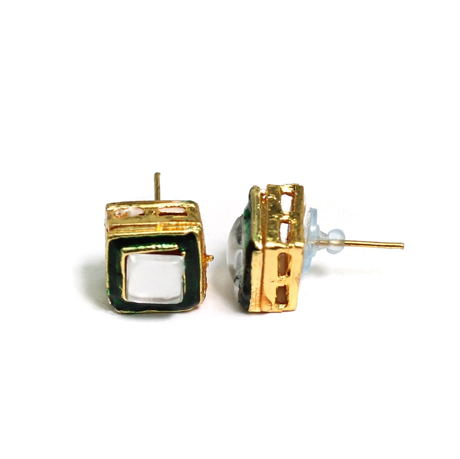 5 Pairs, 11mm Square Kundan Earring Studs - Golden