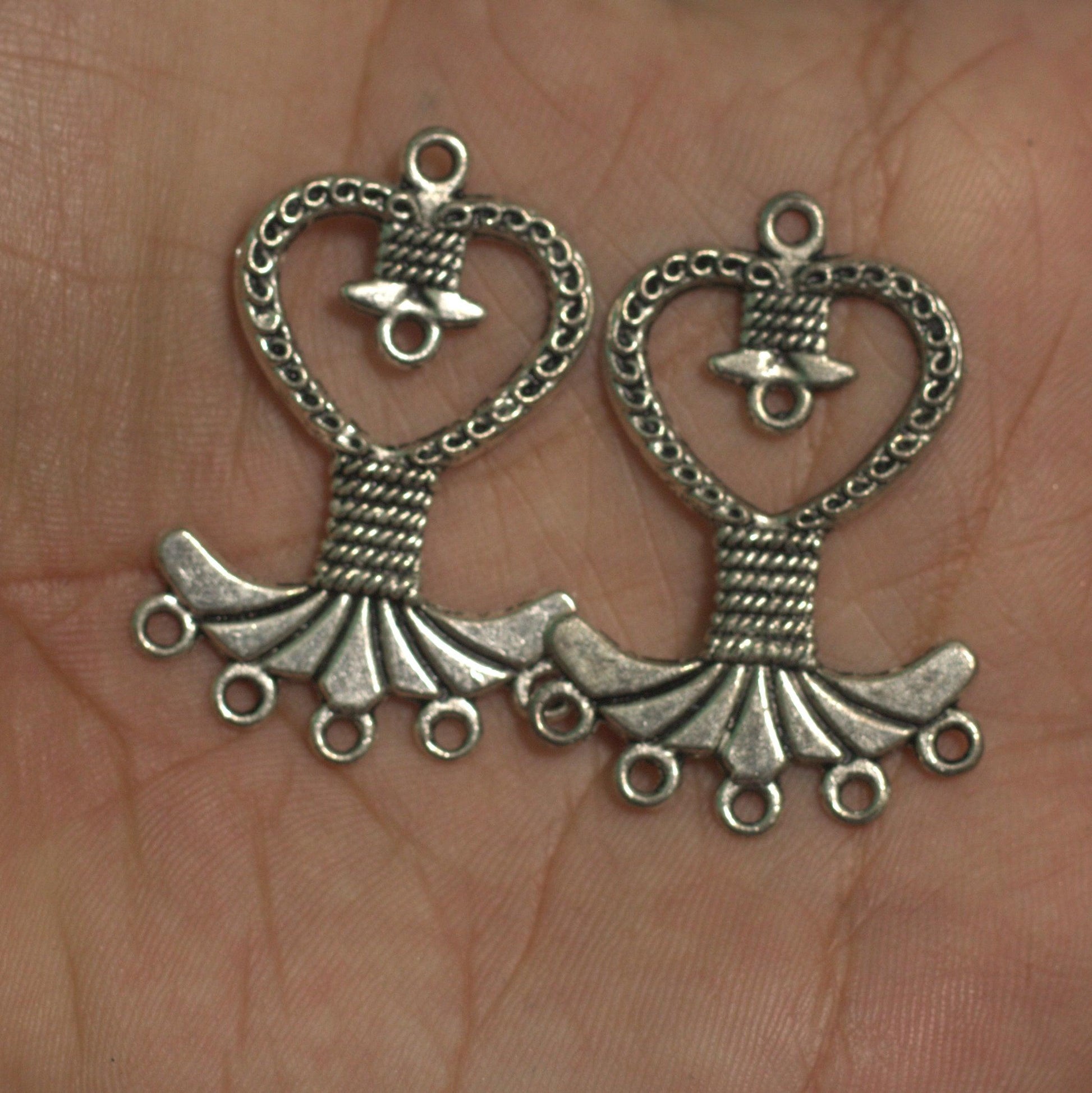 2 Pairs Silver Earring Components 40x28mm - Silver / Alloy
