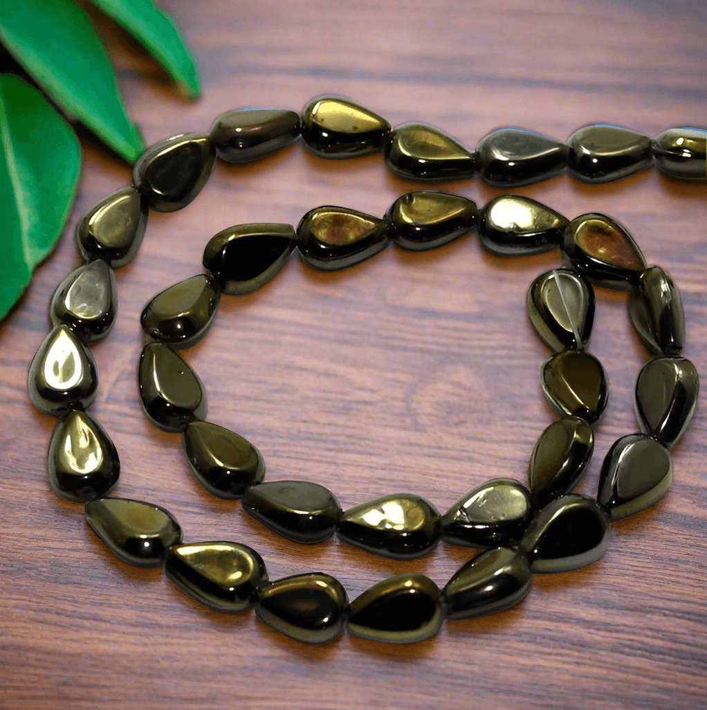 12X8mm Fire Polish Glass Flat Drop Beads GD - Golden / Glass / Drop