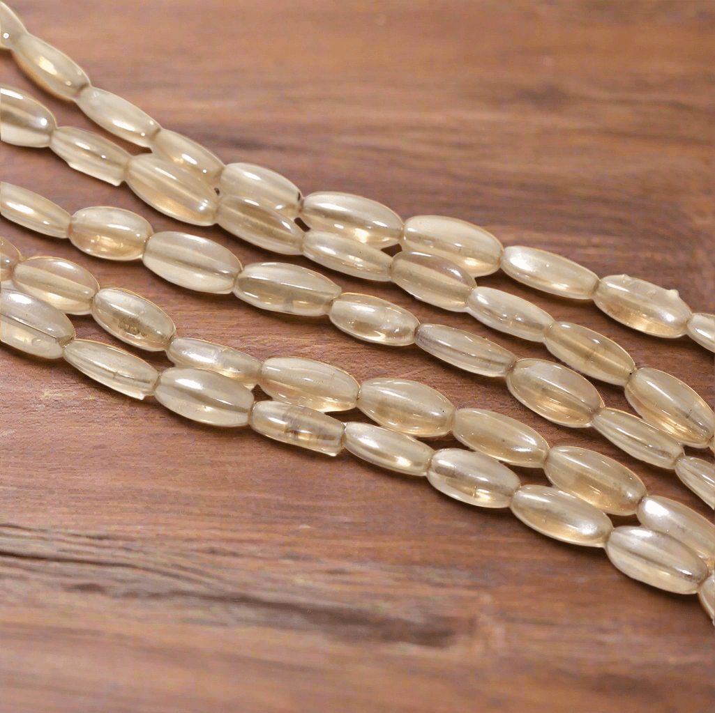 5 Strings Fire Polish Oval Glass Beads Peach 13x4mm - Pink / Glass / Oval