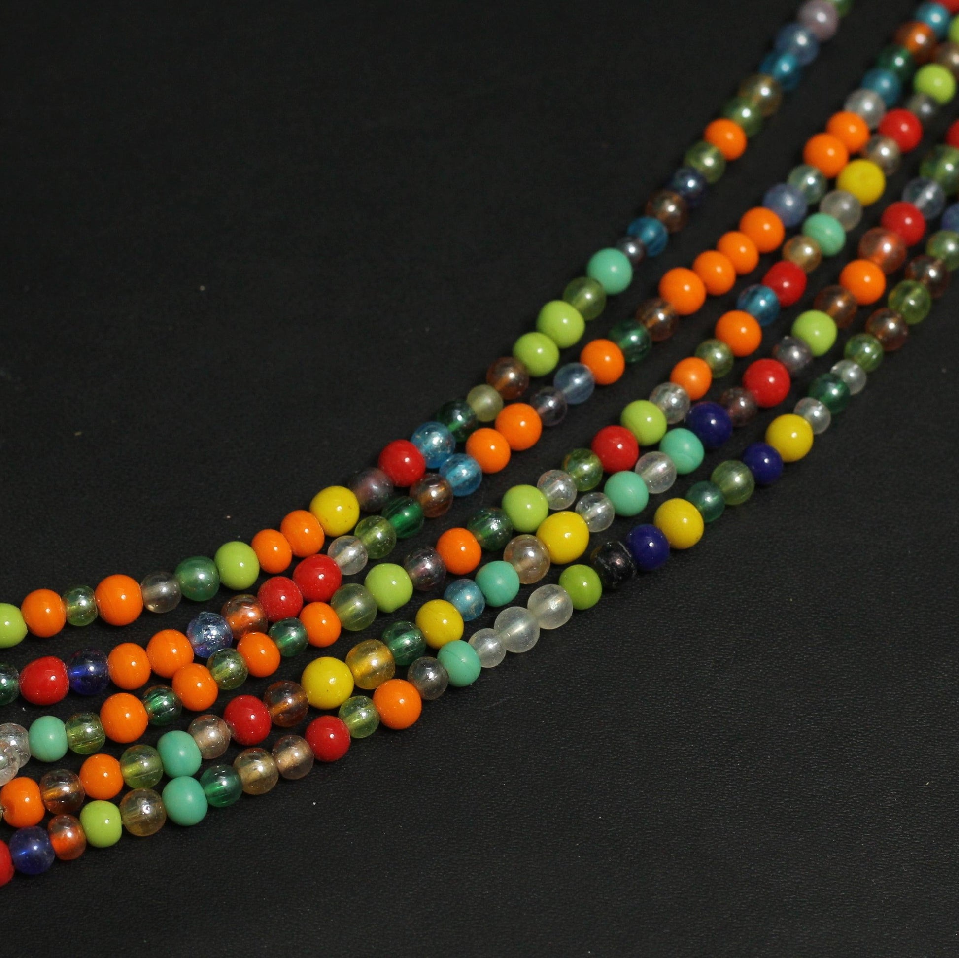 5 strings, 4mm Glass Round Beads - MultiColor / Glass / Round