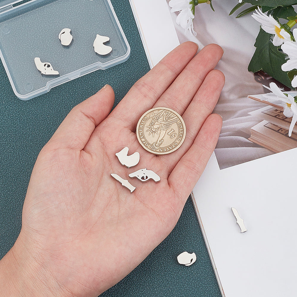 8 Pcs 4 Style 304 Stainless Steel Beads Girl & Unicorn & Dagger & Pistol - Silver / Stainless Steel
